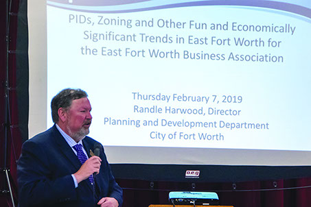 Our February speaker was Randle Harwood, Development Director for the City. For the first time we were able to have a good visual presentation, which could be seen by everyone in the room. Harwood has been in Fort Worth for a long time and he told us that he and his wife lived in East Fort Worth for a time. This gives us more confidence in any of our presenters, when we hear that they are actually familiar with the area.