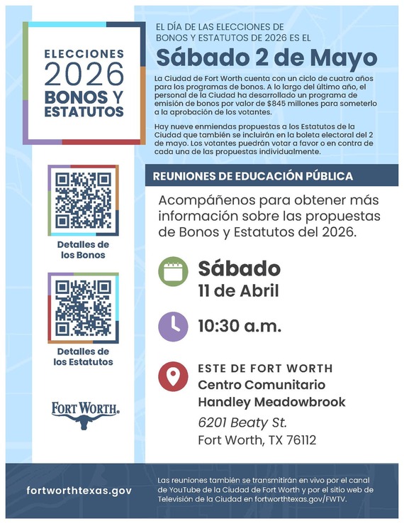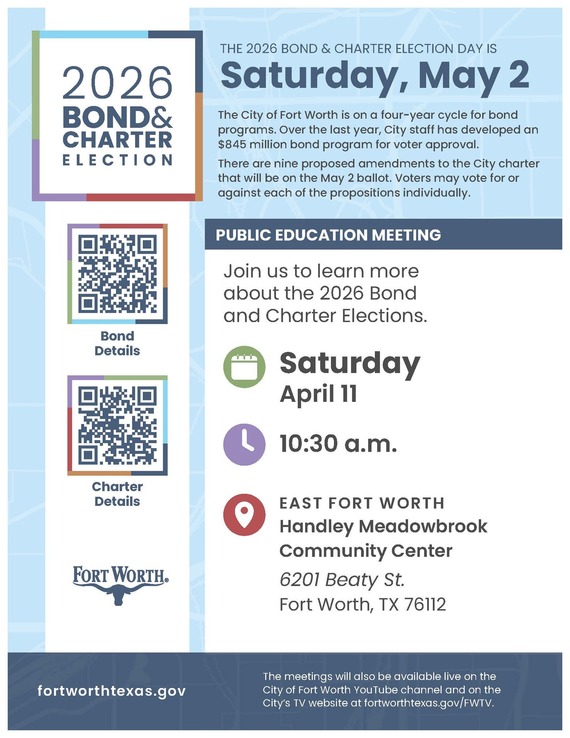 The City of Fort Worth is inviting residents to learn more about the Bond & Charter Election 2026.
